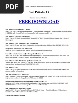 Soal Psikotes Ui Free Download - Download Book Soal Psikotes Ui Pdf / 20180418 kali ini quipper video blog mau mengajak kalian untuk mengerjakan contoh soal tpa penalaran logis.. Silakan download soal psikotes spasial dibawah ini:. Ebook rahasia cetak top skor toefl/toiec 3. Soal dan kunci jawaban psikotes: Admin berharap contoh soal soal psikotes yang kami berikan bisa membuat anda lebih siap secara materi untuk menghadapi ujian psikotes diberbagai bidang yang anda capai. Kamu bisa mengerjakannya sebelum download pada postingan.